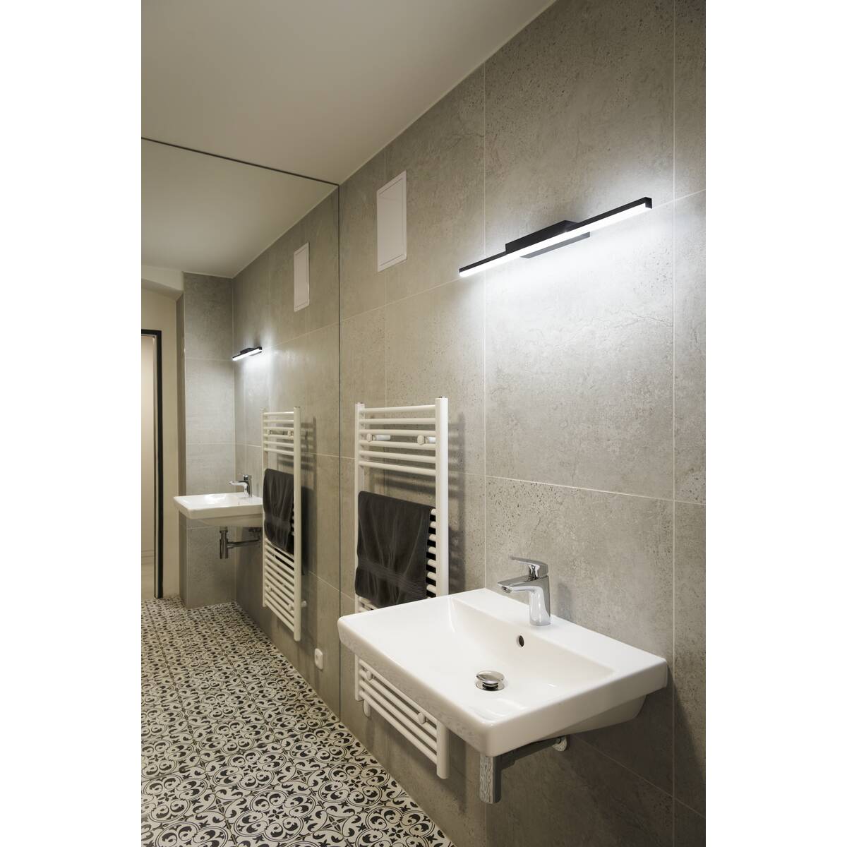 Équipé d'un bandeau LED de haute puissance, le luminaire de miroir GLENOS séduit par son aspect fin et élégant. La fixation en L du profilé du luminaire de miroir disponible dans les couleurs noir, blanc et gris permet d'obtenir un éclairage anti éblouissement du miroir. Son commutateur CCT vous permet de choisir entre deux températures de couleur, 3 000 K et 4 000 K, au moment de l'installation.